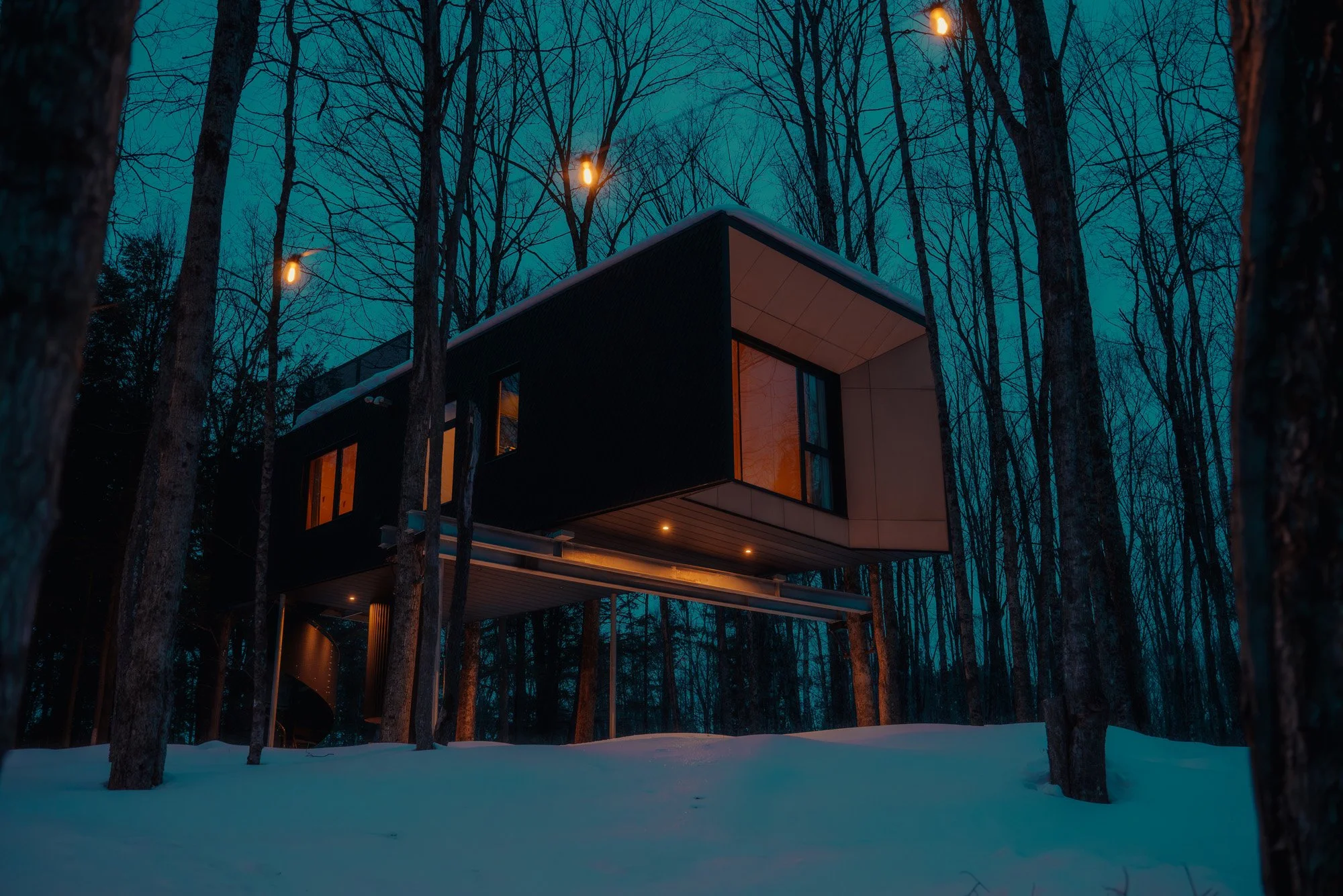 Hårtwood is a boutique, design-led forest stay bordering a 500-acre protected nature reserve in the Haliburton Highlands. Bringing together the best of both worlds—immersive wilderness and refined design—three architectural treehouses anchor the experience, each crafted to blur the line between human and nature. Complementing the stays is The Hydda, our communal hub and curated general store with coffee, wine, and forest provisions—designed to connect you more deeply to place, people, and the wild beauty that surrounds you.