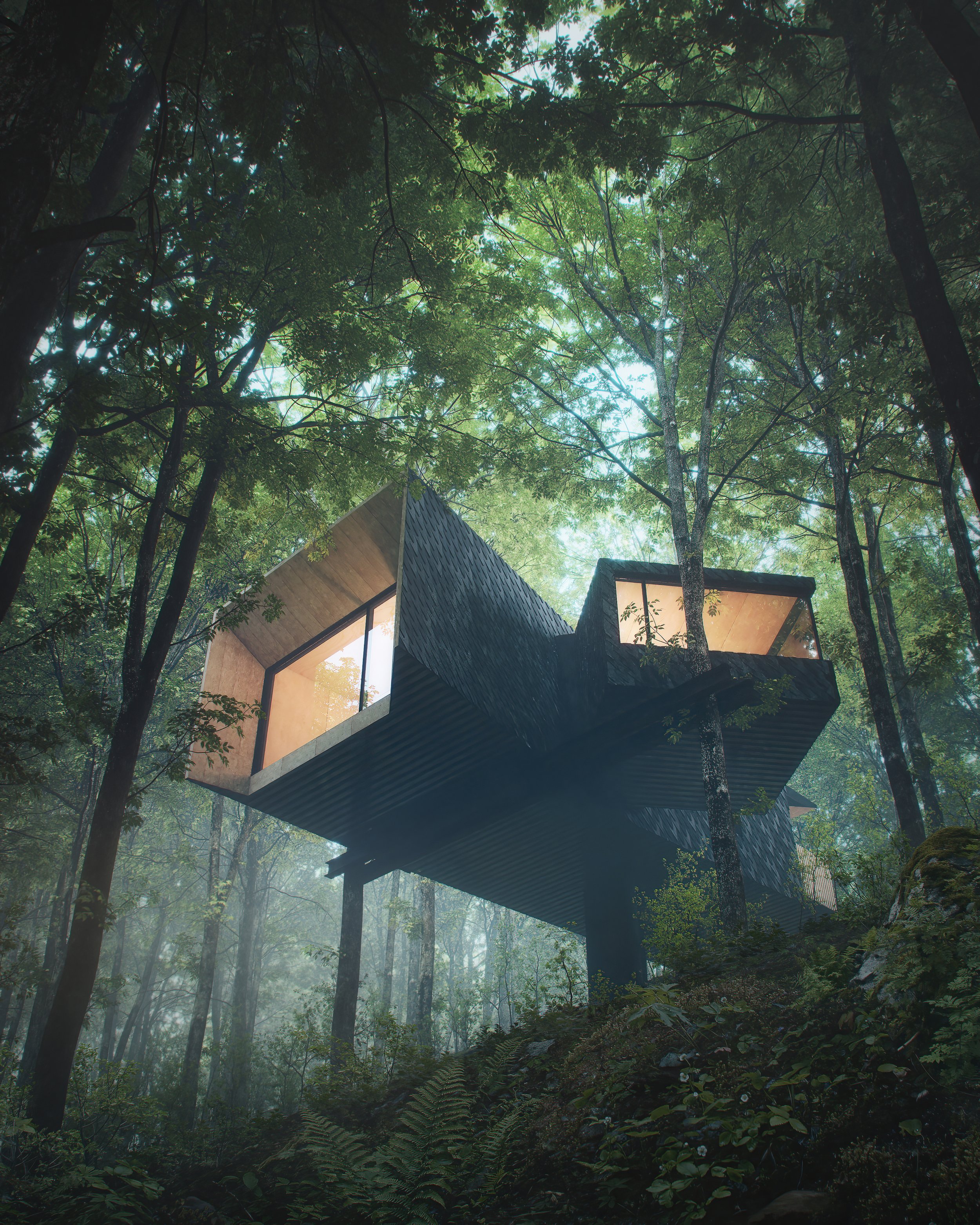 The first treehouse of its kind: our prototype and proof that it is possible to disconnect in order to reconnect through a simple yet immersive experience in the woods. Located on the edge of Algonquin Highlands, Ontario, the treehouse was designed to keep the focus on its surroundings.
